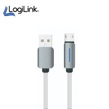 Logilink Usb To Micro Nylon Fast Charging Data Cable With Light 1m (1 Year Warranty) White
